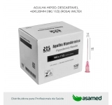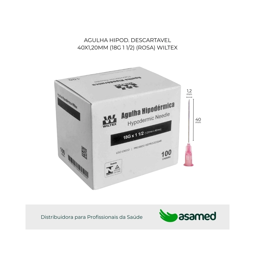 Agulha trifacetada com apresentação em diversos calibres e tamanhos, com o canhão colorido conforme o padrão internacional de cores.