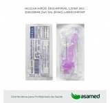 Agulha trifacetada com apresentação em diversos calibres e tamanhos, com o canhão colorido conforme o padrão internacional de cores.