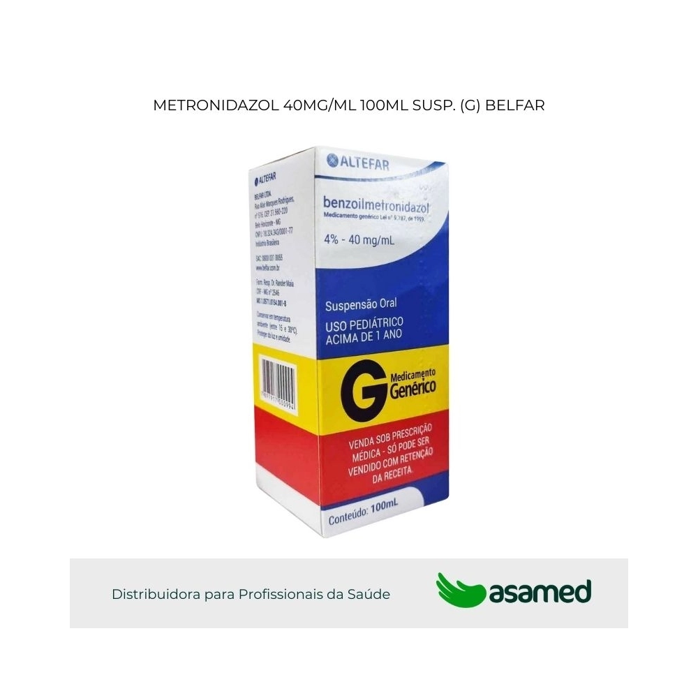 Cada mL de suspensão contém 40 mg de benzoilmetronidazol que correspondem a25 mg de metronidazol.