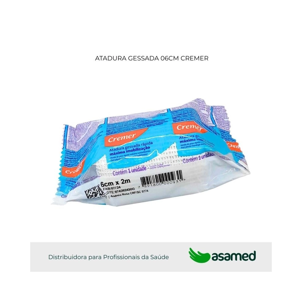 As Atadura gessada são indicadas para qualquer tipo e tamanho de imobilização, onde a fixação rápida é fundamental, como por exemplo: fraturas ósseas, lesões musculares, correções, terapias e outros usos. São excelentes para trabalhar com grande economia de material e tempo, proporcionando maior rentabilidade. Não deve ser aplicado diretamente sobre a pele. Deve ser aplicado sobre a Atadura ortopédica de algodão e/ou Algodão ortopédico.