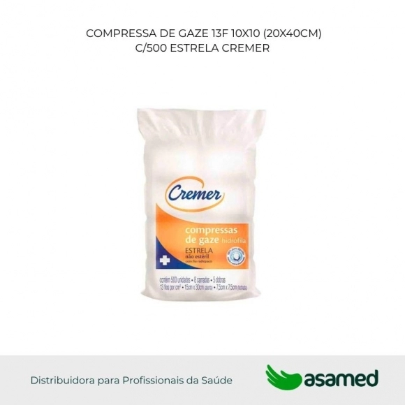 As compressas de gaze possuem 8 camadas e 5 dobras para dentro em toda a sua extensão, para evitar o desfiamento. Variam entre os tamanhos: 10x10cm (fechada) – 20x40cm (aberta). São comercializadas com diferentes quantidades de fios, podendo possuir: 13 fios. Apresentadas em quantidades de 500 unidades por embalagem plásticas e posteriormente acondicionadas em caixa de embarque.