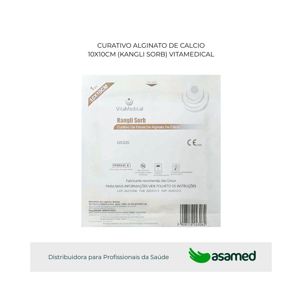 O KANGLI SORB é composto por fibras extraídas, através de uma alta tecnologia, de algas marinhas marrons, nas quais somente os íons de cálcio são incorporados. Os íons de sódio presente no curativo,concentração de 0,118(+-1),correspondem ao já existente nas algas marinhas marrons. Trata-se de um curativo primário que promove um ambiente ideal para o desbridamento autolítico, com altíssima absorção de exsudatos, auxilia a cicatrização da pele e promove hemostasia. Sua função curativa é por ação mecânica das fibras de Alginato de Cálcio e Sódio. Sua remoção é fácil, única e sem trauma. O curativo não é alergênico, totalmente biodegradável e de altíssima absorção, devido a sua maior gramatura.
