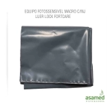 Equipo Fotossensível macrogotas com conector luer lock rotatório, tubo de PVC, pinça rolete, entrada de ar, filtro de solução e injetor lateral.