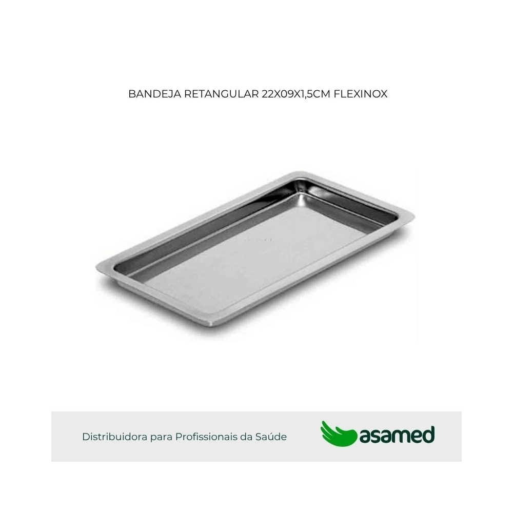 CIRÚRGICO>ESTOJOS, CUBAS E BAN>BANDEJA RETANGULAR 22X09X1,5CM FLEXNOX