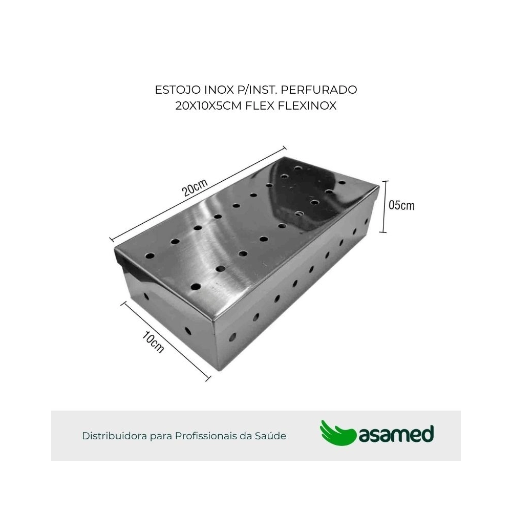 CIRÚRGICO>ESTOJOS, CUBAS E BAN>ESTOJO INOX P/INST. PERFURADO 20X10X5CM FLEX FLEXNOX