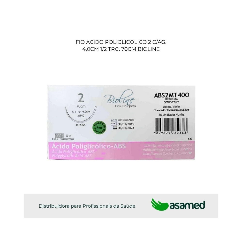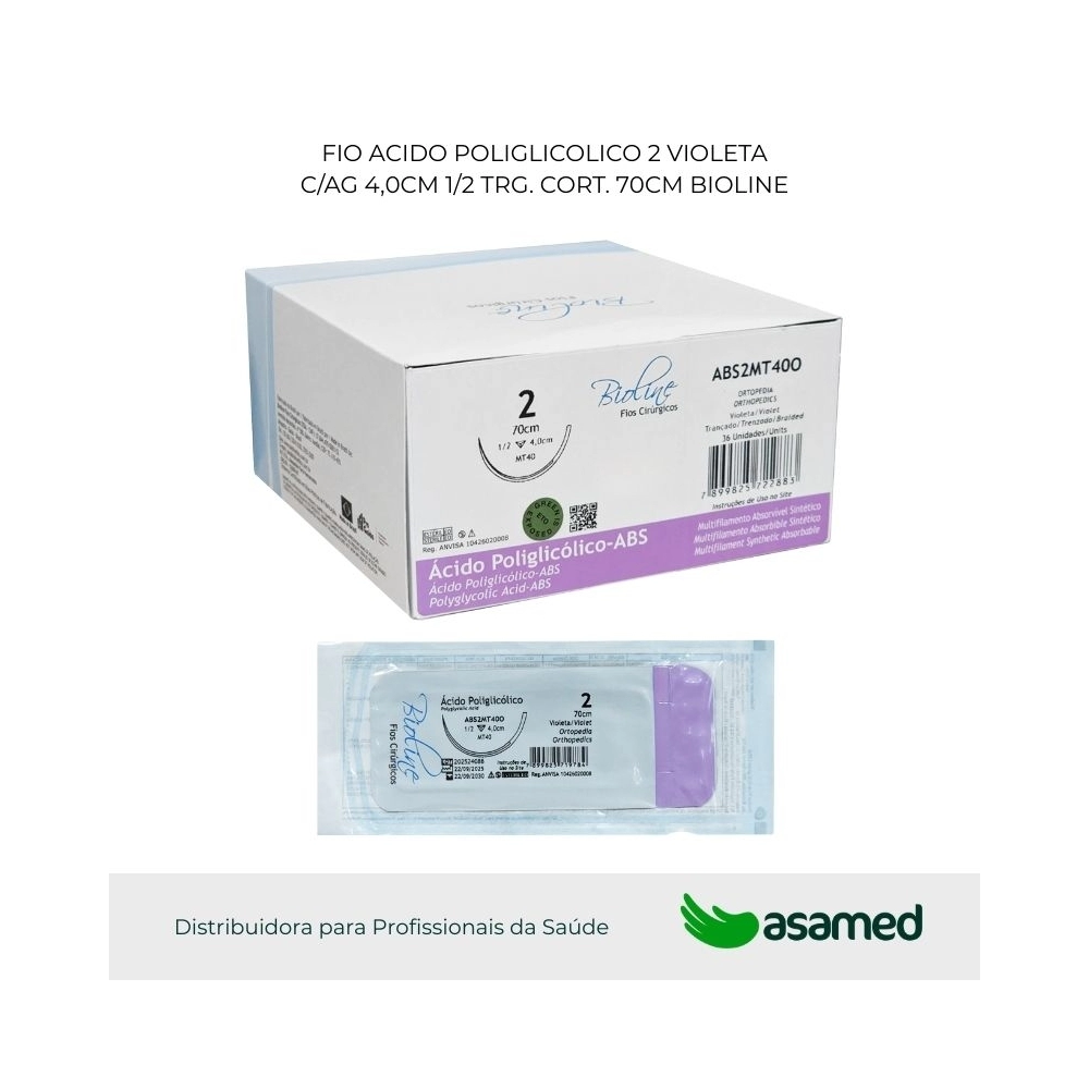 FIO ACIDO POLIGLICOLICO 2 VIOLETA C/AG 4,0CM 1/2 TRG. CORT. 70CM BIOLINE