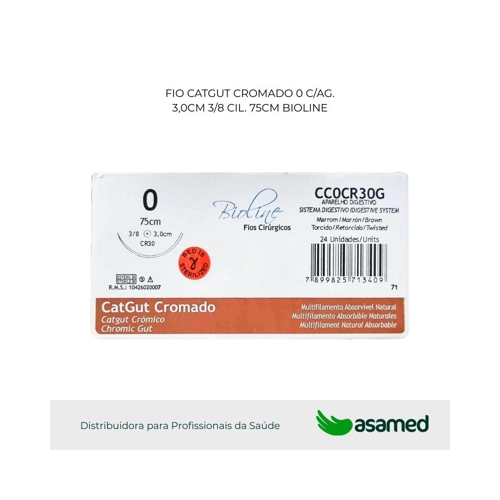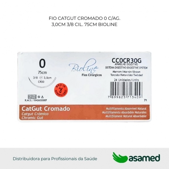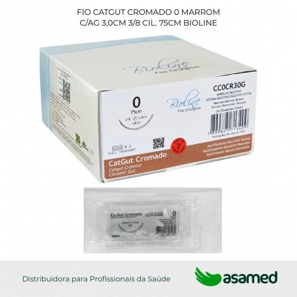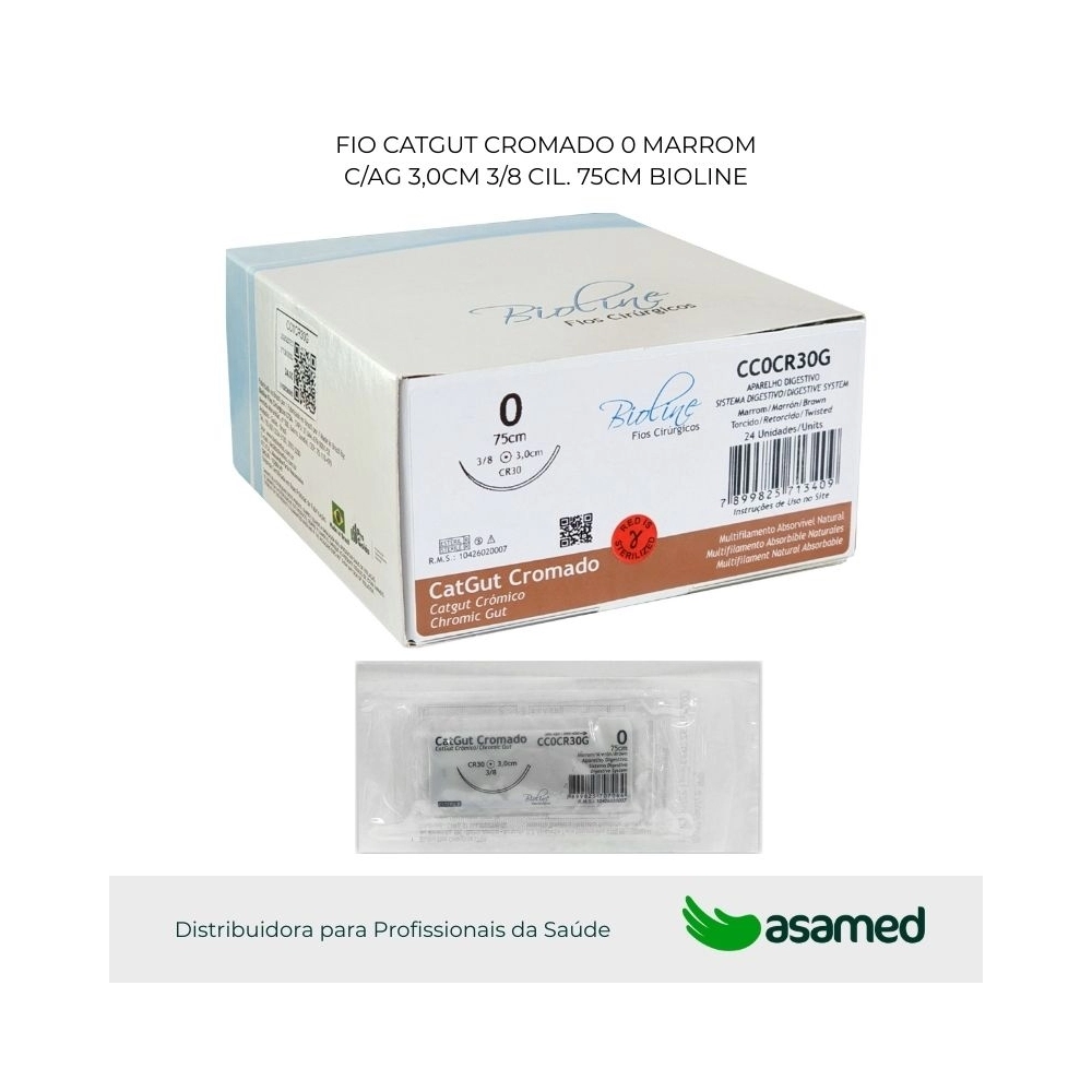 O fio de sutura de catgut cromado é de origem animal, fabricado com fio absorvível multifilamentar de serosa bovina. Fio de aspecto homogêneo aparentemente monofilamentar. Absorção prolongada devido ao tratamento especial com sais de cromo. Possui alta resistência e fácil manuseio.