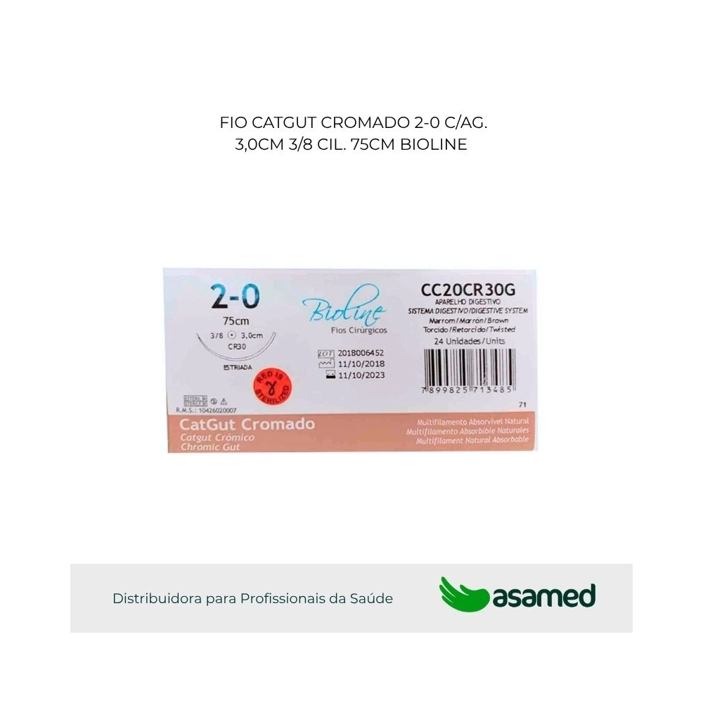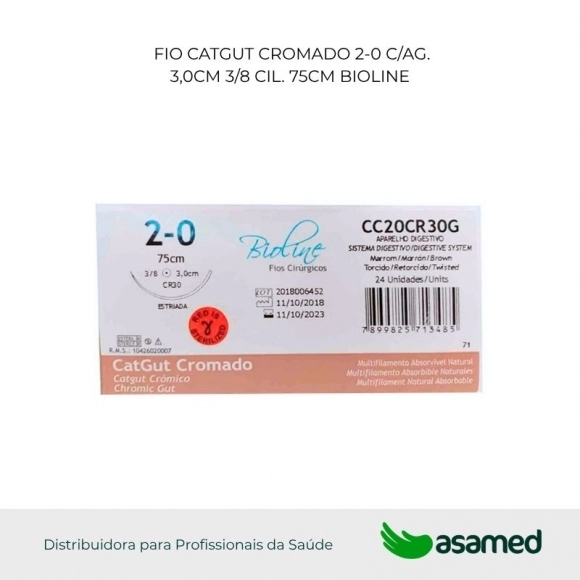 O fio de sutura de catgut cromado é de origem animal, fabricado com fio absorvível multifilamentar de serosa bovina. Fio de aspecto homogêneo aparentemente monofilamentar. Absorção prolongada devido ao tratamento especial com sais de cromo. Possui alta resistência e fácil manuseio.
