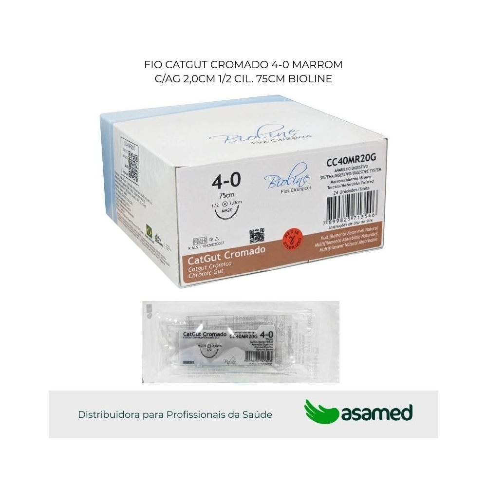 O fio de sutura de catgut cromado é de origem animal, fabricado com fio absorvível multifilamentar de serosa bovina. Fio de aspecto homogêneo aparentemente monofilamentar. Absorção prolongada devido ao tratamento especial com sais de cromo. Possui alta resistência e fácil manuseio.