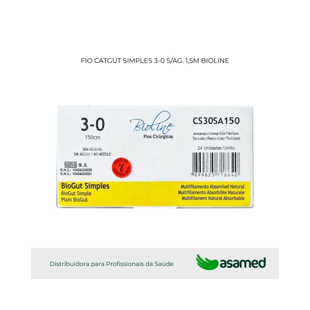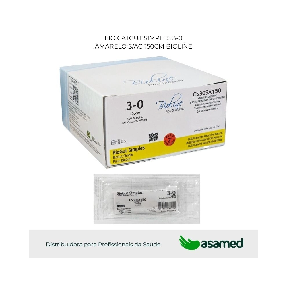 O fio de sutura de catgut simples (BioGut) é de origem animal, fabricado com fio absorvível multifilamentar de serosa bovina. Fio de aspecto homogêneo aparentemente monofilamentar. Possui alta resistência e fácil manuseio.