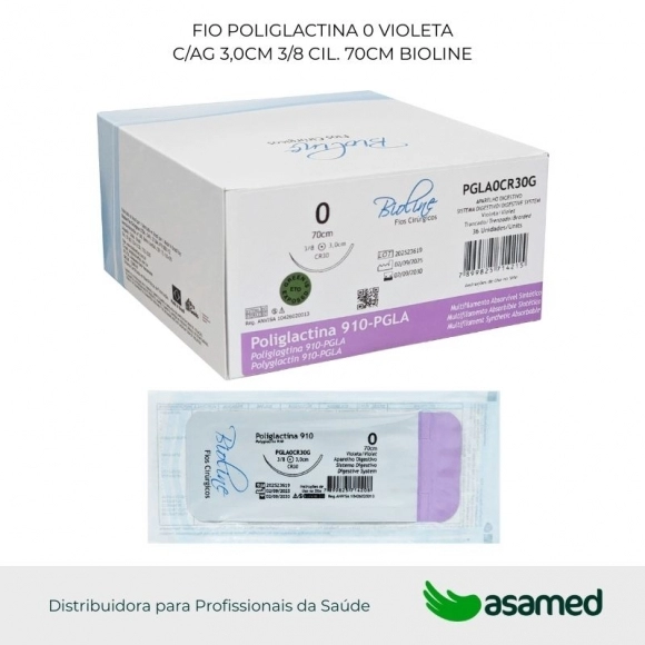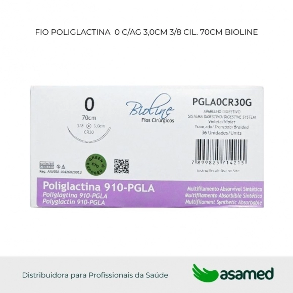 O fio de sutura de PGLA é de origem sintética, fabricado com fio absorvível multifilamentar dos ácidos glicólico 90% e lático 10% coberto por poliglicolide co-L-lactide e estearato de cálcio, possui alta resistência e excelente manuseio.