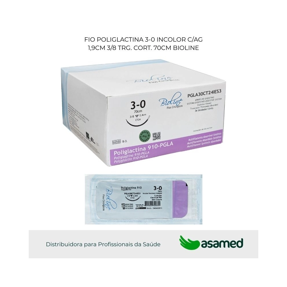 FIO POLIGLACTINA 3-0 INCOLOR C/AG 1,9CM 3/8 TRG. CORT. 70CM BIOLINE