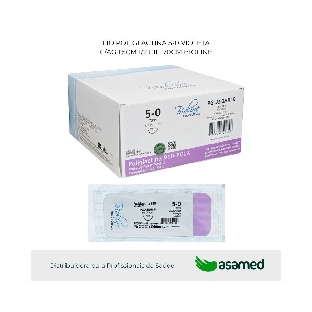 FIO POLIGLACTINA 5-0 VIOLETA C/AG 1,5CM 1/2 CIL. 70CM BIOLINE
