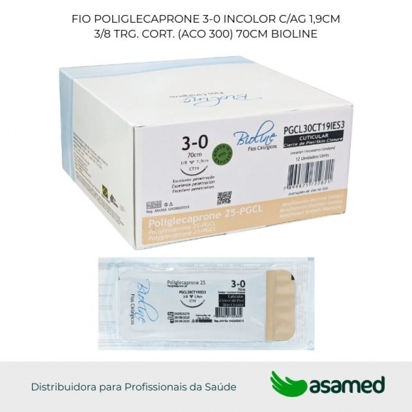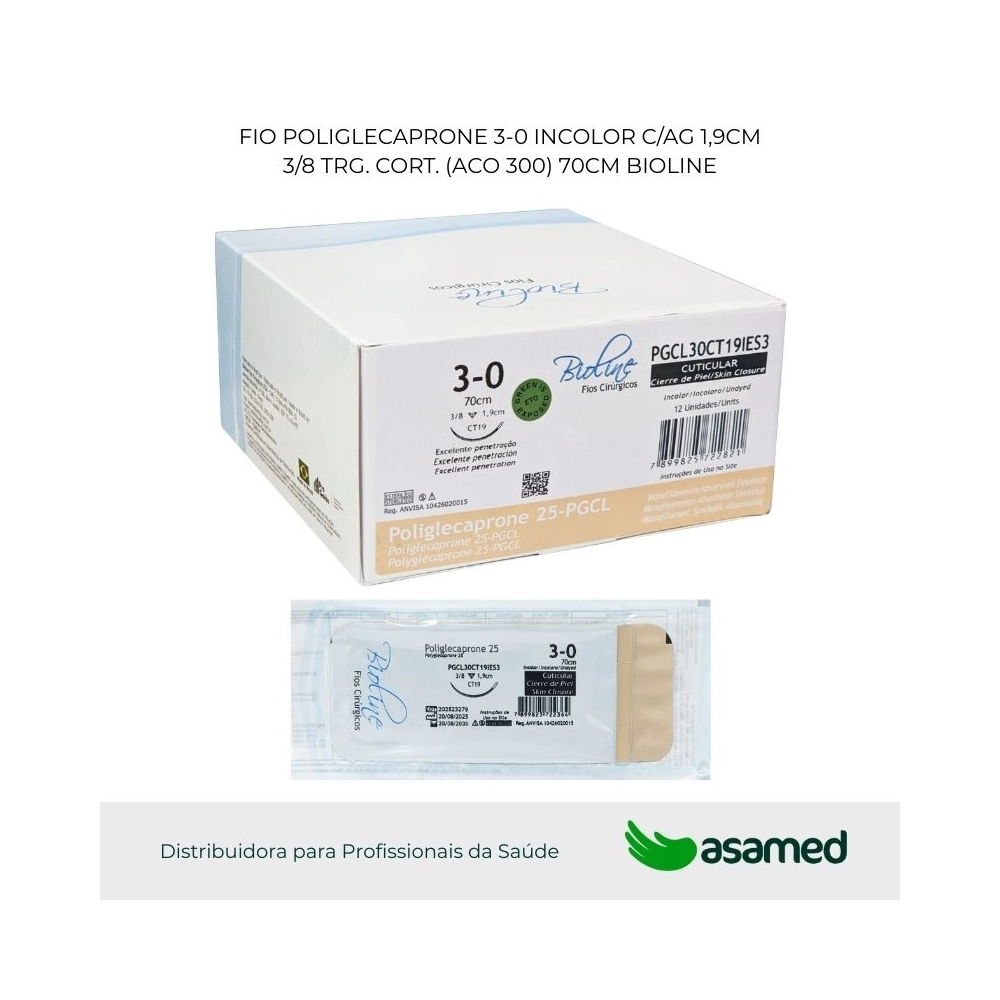 O fio de sutura de PGCL é de origem sintética, fabricado com fio absorvível monofilamentar de poliglicolídeo-poli 75% e e-caprolactona 25%, possui alta resistência e fácil manuseio.