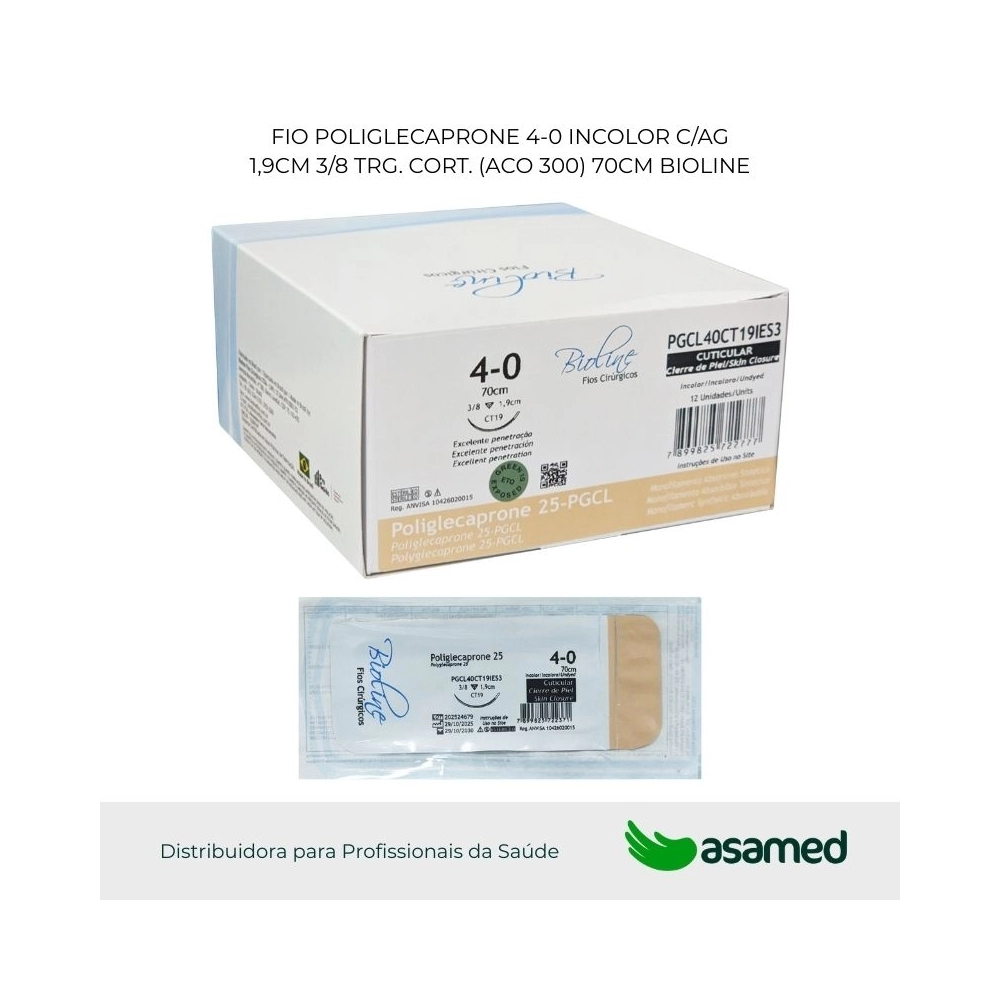O fio de sutura de PGCL é de origem sintética, fabricado com fio absorvível monofilamentar de poliglicolídeo-poli 75% e e-caprolactona 25%, possui alta resistência e fácil manuseio.
