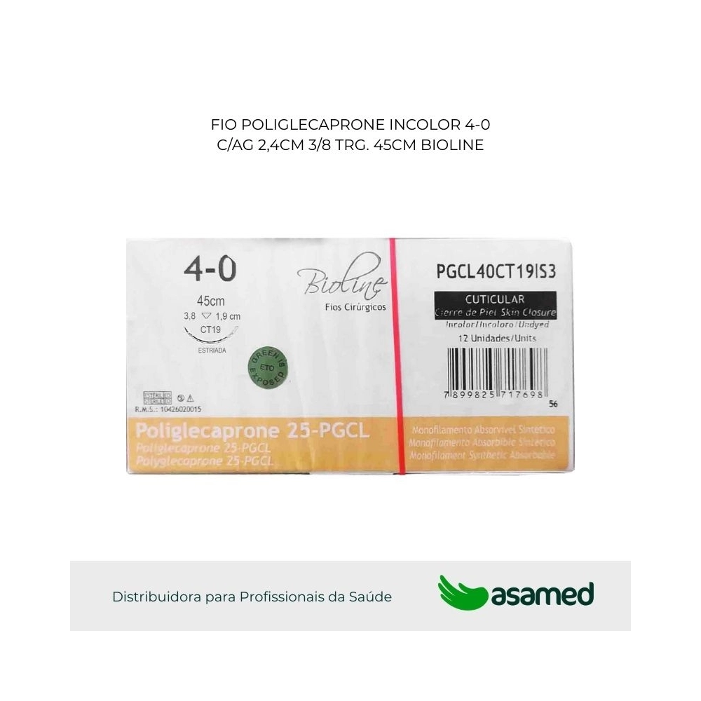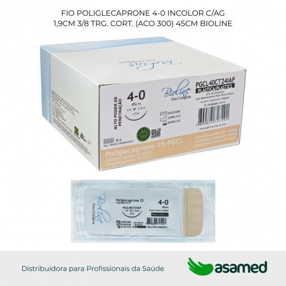 O fio de sutura de PGCL é de origem sintética, fabricado com fio absorvível monofilamentar de poliglicolídeo-poli 75% e e-caprolactona 25%, possui alta resistência e fácil manuseio.