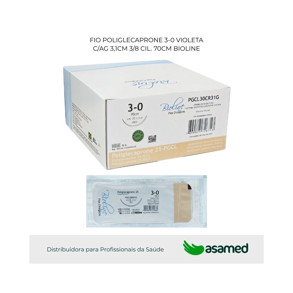 O fio de sutura de PGCL é de origem sintética, fabricado com fio absorvível monofilamentar de poliglicolídeo-poli 75% e e-caprolactona 25%, possui alta resistência e fácil manuseio.