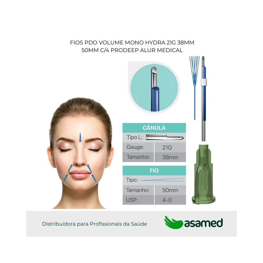 Os fios de PDO são feitos com material biocompatível e absorvível de polidioxanona. Podem ser usados em procedimentos estéticos como lifting e bioestimulação de colágeno facial e corporal. Aplicados com agulha ou microcânula, garantem segurança e integridade através de um canhão/hub e uma capa de proteção, oferecendo uma solução não alergênica, biodegradável e compatível com o corpo, por serem monofilamentares.