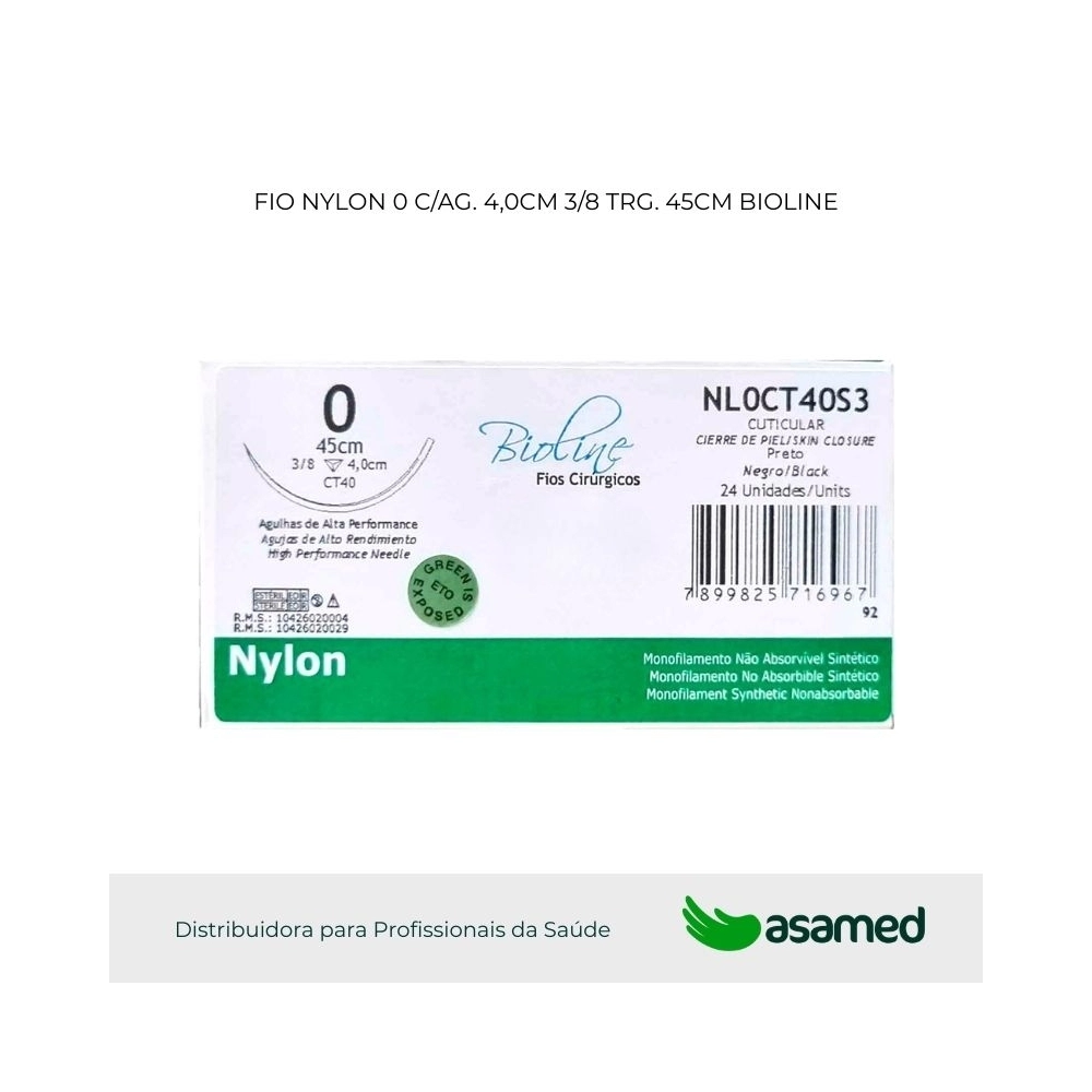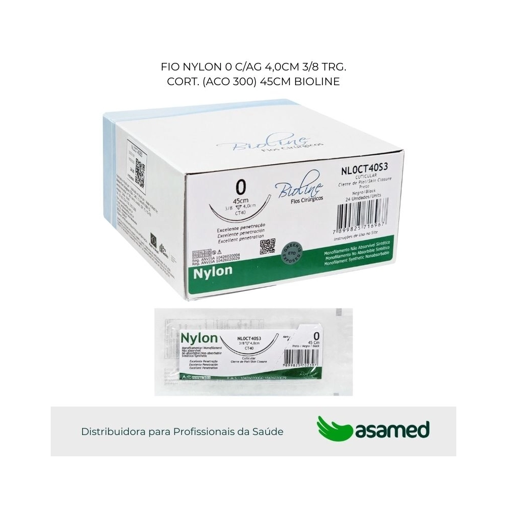 O fio de sutura de nylon é de origem sintética, fabricado com fio não absorvível monofilamentar de poliamida 6 (PA 6.6). É um material biologicamente compatível, bem tolerado pelo organismo, de alta resistência e fácil manuseio.