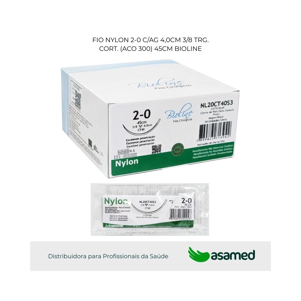 O fio de sutura de nylon é de origem sintética, fabricado com fio não absorvível monofilamentar de poliamida 6 (PA 6.6). É um material biologicamente compatível, bem tolerado pelo organismo, de alta resistência e fácil manuseio.