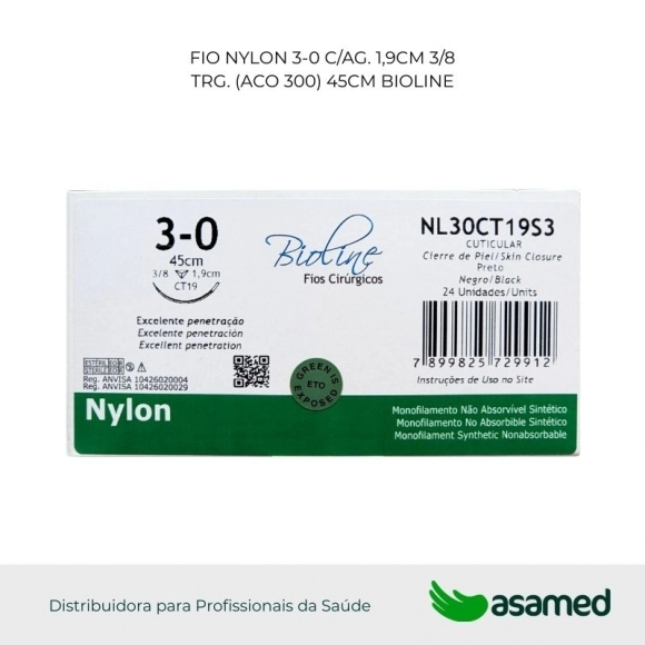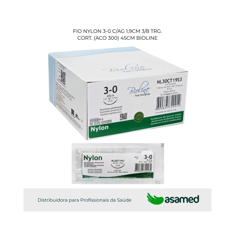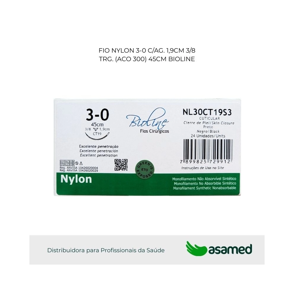 O fio de sutura de nylon é de origem sintética, fabricado com fio não absorvível monofilamentar de poliamida 6 (PA 6.6). É um material biologicamente compatível, bem tolerado pelo organismo, de alta resistência e fácil manuseio.