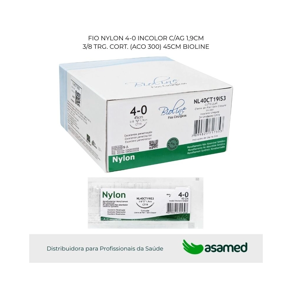 O fio de sutura de nylon é de origem sintética, fabricado com fio não absorvível monofilamentar de poliamida 6 (PA 6.6). É um material biologicamente compatível, bem tolerado pelo organismo, de alta resistência e fácil manuseio.
