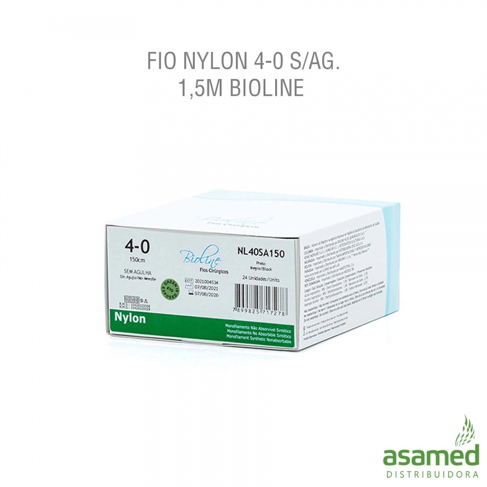 Descrição - Os fios cirúrgicos de Nylon são de origem sintética, fabricados a partir da extrusão de poliamida 6 (PA 6.6). É um material biologicamente compatível, bem tolerado pelo organismo, monofilamentar, de alta resistência e fácil manuseio. A hidrólise progressiva pode resultar em perda gradual da força tênsil “in vivo”. Reação tecidual inflamatória aguda mínima. Não absorvível. Esterilizado por Óxido de Etileno ou Cobalto.