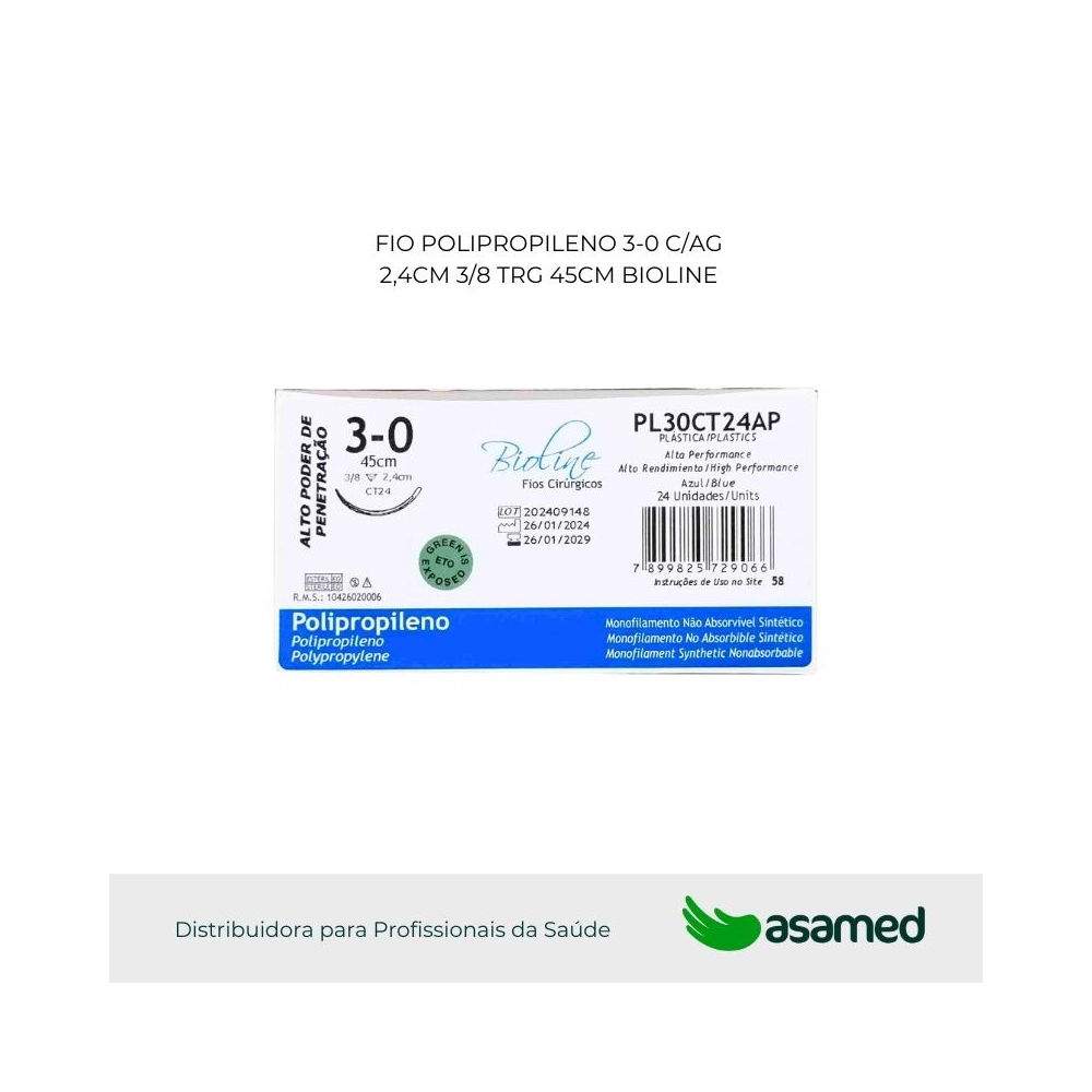 FIO POLIPROPILENO AZUL COM AGULHA 2,4cM - ALTO PODER DE PENETRAÇÃO / ALTA PERFORMANCE