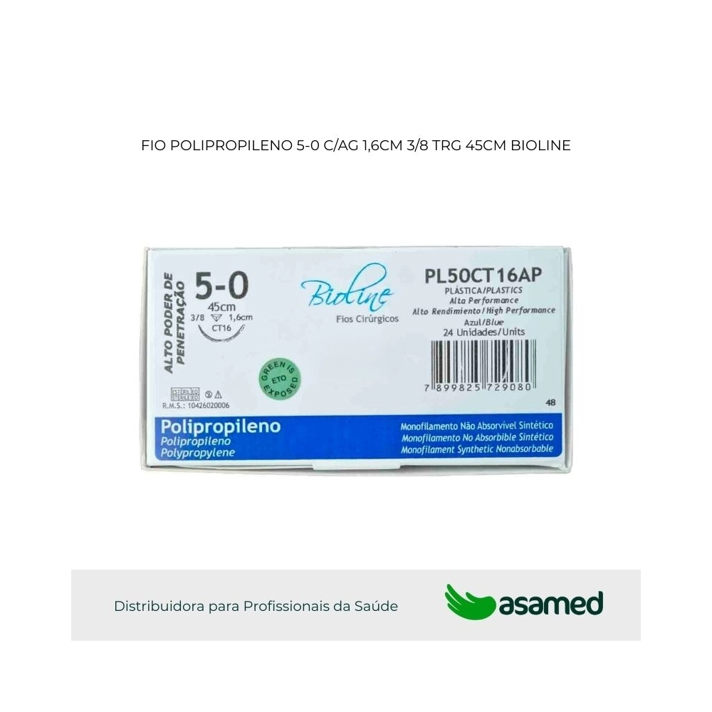 O fio de Polipropileno Monofilamentado Agulhado é um produto sintético, estéril e não absorvível. Sua estrutura monofilamentar é formada por uma fibra sintética de polipropileno quimicamente purificada e altamente resistente aos agentes atmosféricos. Os fios são fornecidos tingidos de azul por aditivos totalmente atóxicos, usados para realçar a visibilidade do produto. Os fios de Polipropileno Monofilamentado Agulhado atendem a todas as especificações da Farmacopeia Americana (United States Pharmacopeia U.S.P) e a norma ABNT-NBR 13904:2003.