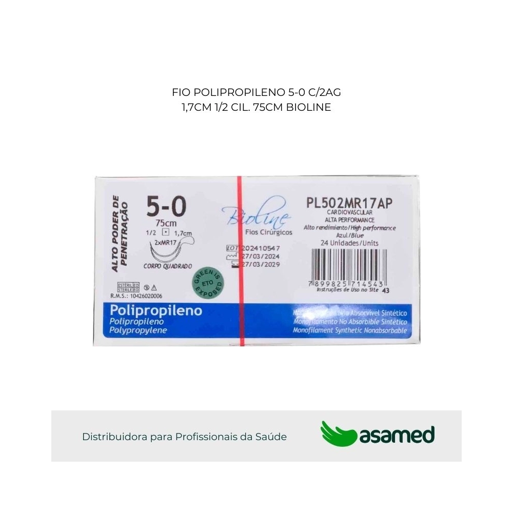 Os fios cirúrgicos de polipropileno são de origem sintética, fabricadas com fio não absorvível monofilamentar a partir do polímero de polipropileno. É um material biologicamente compatível, bem tolerado pelo organismo, de alta resistência e fácil manuseio. São contraindicadas em procedimentos que haja contato de longa duração com soluções salinas.