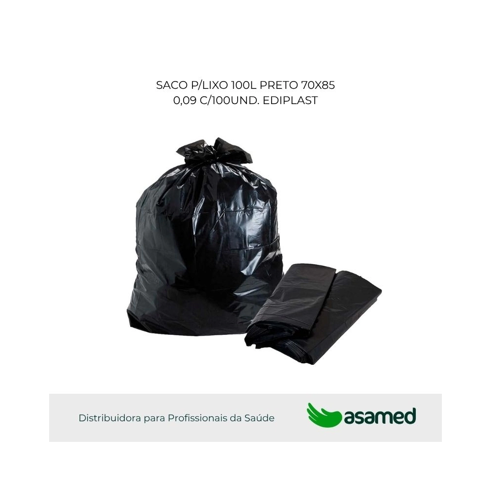 LIMPEZA E SANEANTES>HIGIENE E LIMPEZA>SACO P/LIXO 100L PRETO 70X85 0,09 C/100UND. EDIPLAST