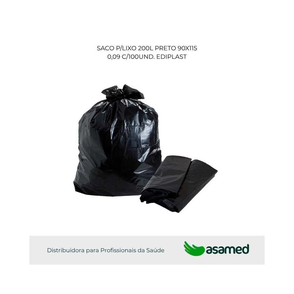 LIMPEZA E SANEANTES>HIGIENE E LIMPEZA>SACO P/LIXO 200L PRETO 90X115 0,09 C/100UND. EDIPLAST