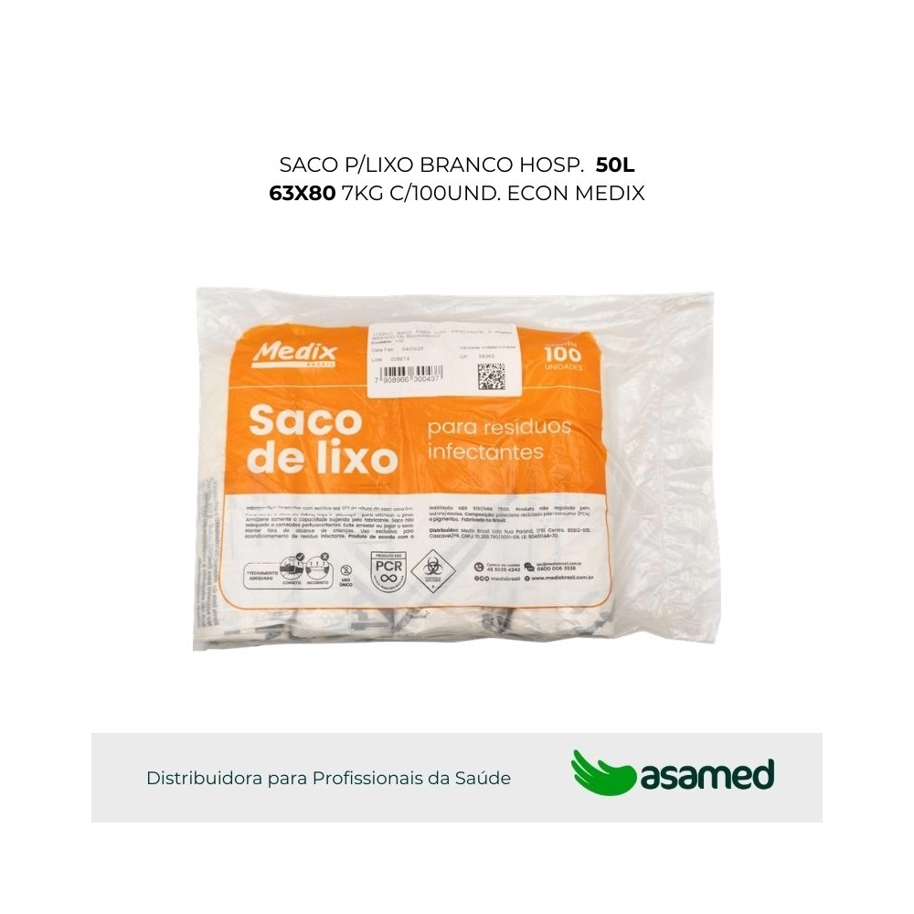 SACO PARA LIXO INFECTANTE BRANCO ECONÔMICO - MEDIX