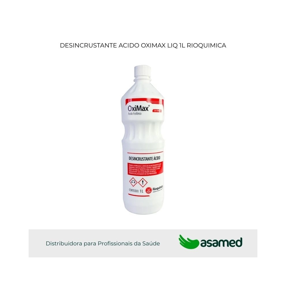 FINALIDADE: O OXIMAX® é um desincrustante ácido, desenvolvido para remoção de manchas e oxidações de instrumental cirúrgico inoxidável ou qualquer outro utensílio em aço inoxidável.