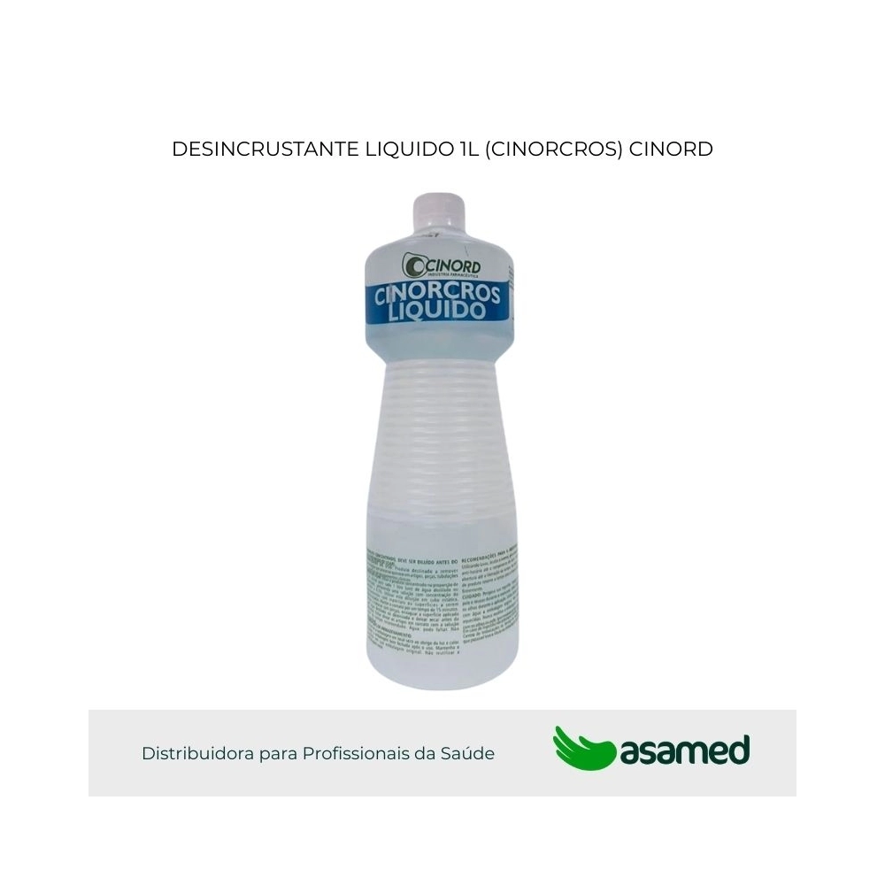 Cinorcros líquido é um detergente desincrustante alcalino a base de Hidróxido de Sódio, destina-se a remover incrustações por processo químico em artigos, peças, tubulações e superfícies de equipamentos clínicos.