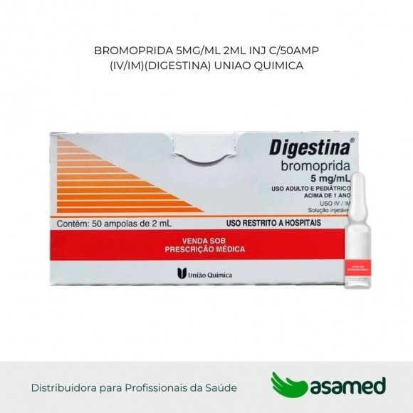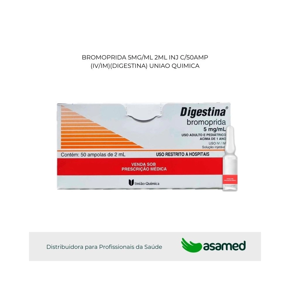 DIGESTINA solução injetável via intravenosa (IV): a administração intravenosa de DIGESTINA (bromoprida) deve ser feita de forma lenta (superior a 3 minutos) após diluição com solução de cloreto de sódio 0,9% ou solução de glicose 5% para evitar reações adversas como agitação, ansiedade, sonolência e hipotensão.