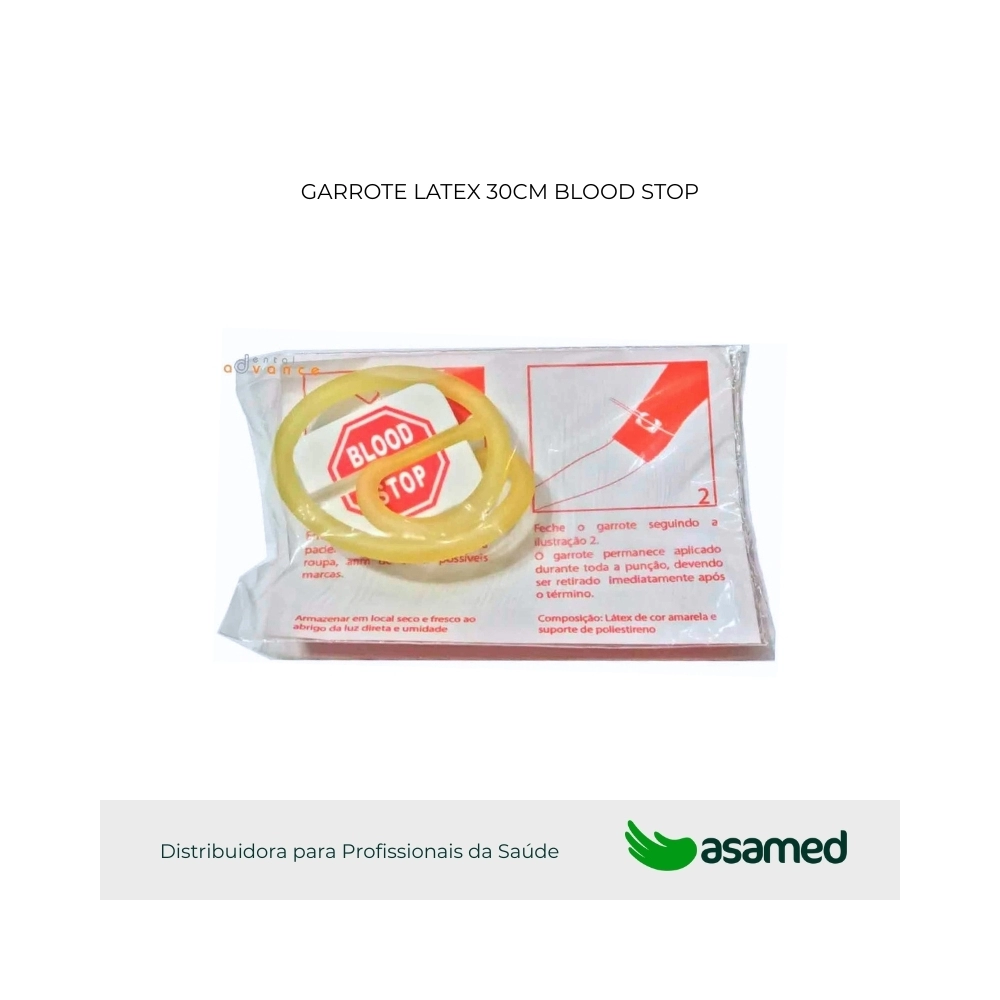 Utilizado no procedimento de coleta de sangue é confeccionado em látex e poliestireno, mede aproximadamente 30 cm e possui trava personalizada com a logomarca Blood Stop.