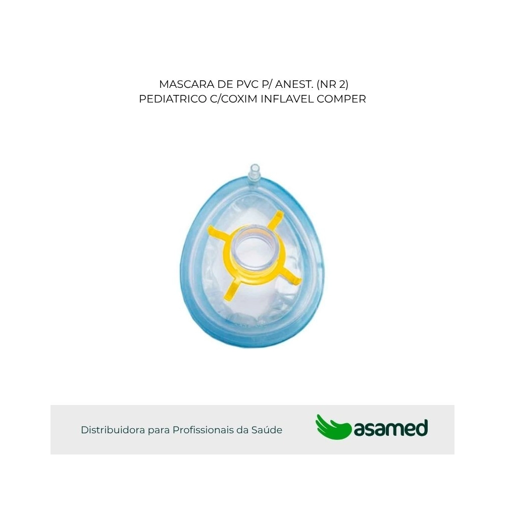 A máscara de anestesia com coxim inflável Comper é indicada para administração de oxigênio e gás de anestesia ao paciente. Máscara facial em PVC, descartável, formato anatômico e coxim inflável com Válvula de Segurança. Acompanha anéis retentores para fixação.