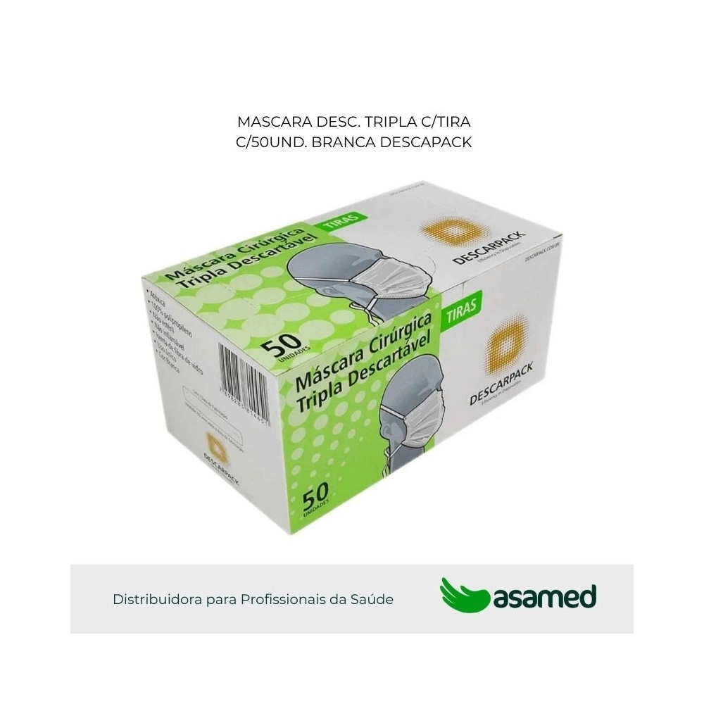 • A Máscara Cirúrgica Tripla Descarpack é indicada para proteção usuário contra as patologias de transmissão aérea por gotículas e da projeção de fluídos corpóreos que possam atingir as vias respiratórias, minimizando tanto a contaminação do ambiente, quanto do usuário.