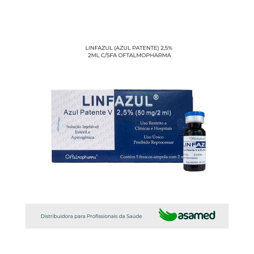 LINFAZUL® é uma solução aquosa estéril e apirogênica do sal sódico do Azul Patente V, um corante vital, tamponada através de Fosfato Monossódico e Fosfato Dissódico e tornada isotônica pela adição de Cloreto de Sódio.