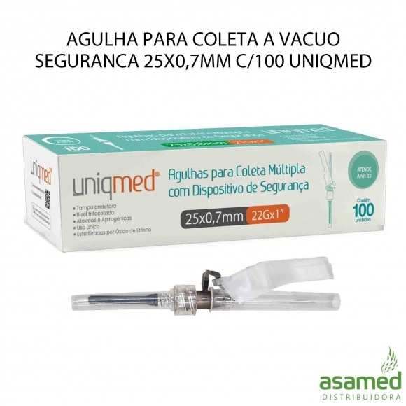 AGULHAS PARA COLETA MÚLTIPLA UNIQMED - COM DISPOSITIVO DE SEGURANÇA - 25X0,7MM 22G 1\'\'
