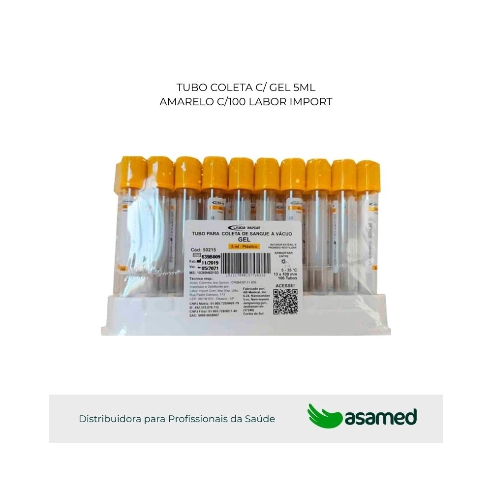 V-tube labor import com gel separador - embalagem com 100 (cem) tubos.