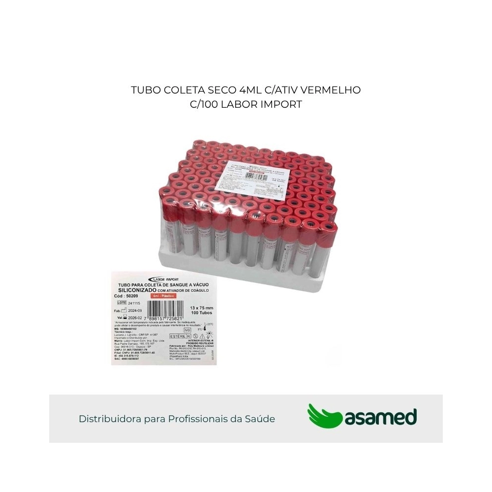 - Embalagem com 100 (cem) tubos - (13 x 75)mm – 4mL - PLÁSTICO