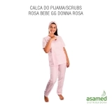 O conjunto de pijama hospitalar (Scrubs), blusa e calça é composto em tecido 100% poliéster. A blusa tem modelagem gola tipo V, dois bolos frontais grandes. Calça com modelagem reta, bolsos laterais e elástico na cintura para melhor ajuste. Conjunto com