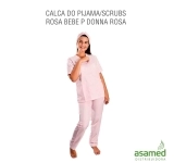 O conjunto de pijama hospitalar (Scrubs), blusa e calça é composto em tecido 100% poliéster. A blusa tem modelagem gola tipo V, dois bolos frontais grandes. Calça com modelagem reta, bolsos laterais e elástico na cintura para melhor ajuste. Conjunto com