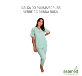 O conjunto de pijama hospitalar (Scrubs), blusa e calça é composto em tecido 100% poliéster. A blusa tem modelagem gola tipo V, dois bolos frontais grandes. Calça com modelagem reta, bolsos laterais e elástico na cintura para melhor ajuste. Conjunto com