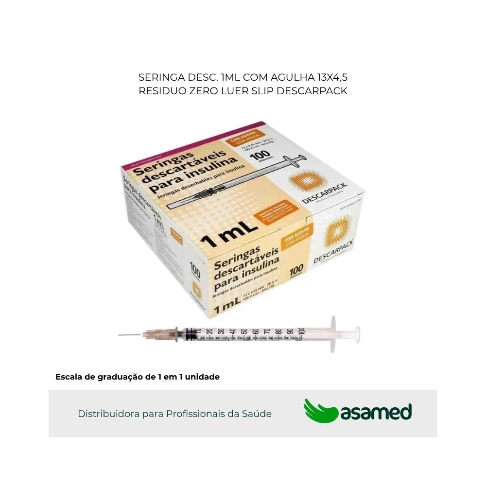 A Seringa de Insulina Descartável Descarpack é indicada para aplicação de insulina pela via subcutânea e intradérmica em hospitais, clínicas, laboratórios, farmácias e domicílios;