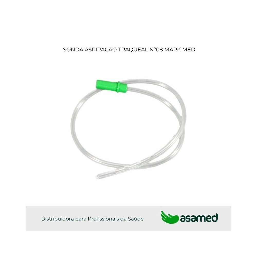 A Sonda para Aspiração Traqueal - Mark Med é uma sonda confeccionada em tubo de PVC, atóxico, apirogênico, cristal, transparente de paredes finas e maleáveis, com 50 cm de comprimento no calibre 08 Fr (uso infantil), com ponta arredondada e aberta, com 02 furos laterais e provida na outra extremidade de um conector comum ou válvula e sem tampa.