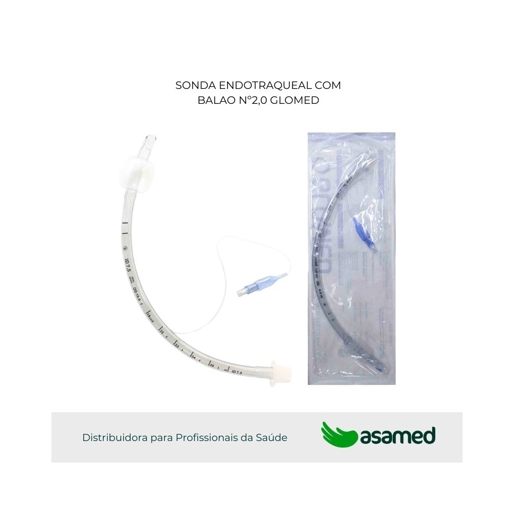 A Sonda Endotraqueal com balão – GLOMED é composta por um tubo em PVC, curvado, transparente e radiopaco, possui marcadores de graduação em centímetro com balão em PVC, biselado com olho Murphy.