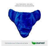 A calcinha descartável é confeccionada em tecido não tecido (TNT), 100% polipropileno, com costuras em overlock e lastéx. Indicada para viagens, hospitalização e tratamentos, sendo confortável permitindo a transpiração da pele.